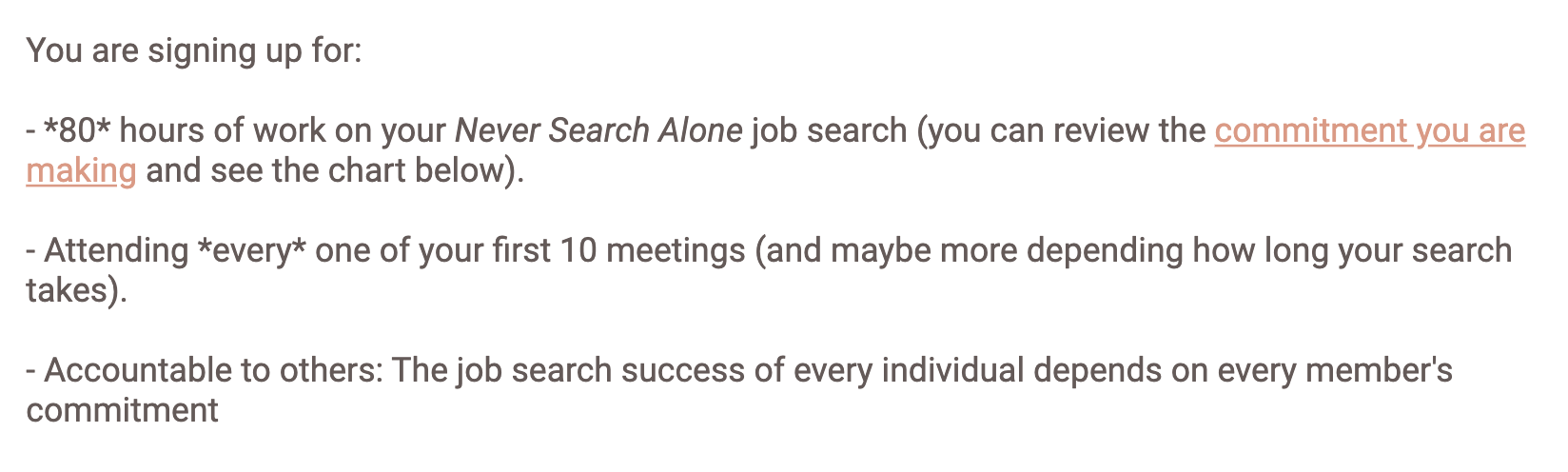 I recently joined a Job Search Council through the community of Never Search Alone. My understanding so far is that I’ll join a small group of about 10 people supporting each other in their job search.