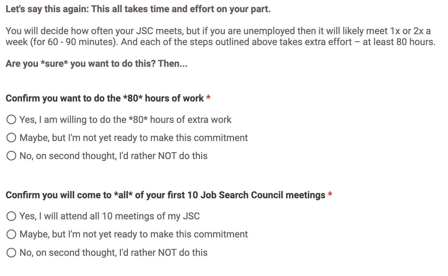 I was struck by how intensely the signup forms drilled the importance of the *commitment.*